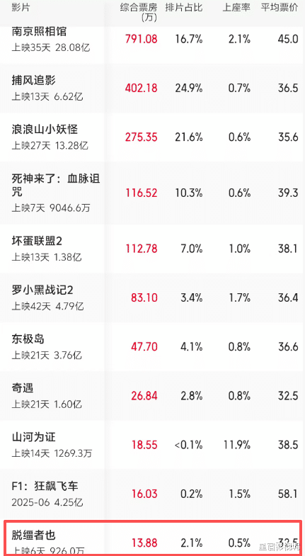 《脱缰者也》上映6天,票房926万,预测票房仅有1448万。